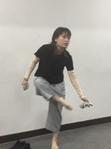 稽古風景:今井桃子さん 初めての自作ソロ創作・演出ということで、しかし身体の使い方上手い! 発語による変化を含めた身体の見せ方が、これからの稽古ポイントになってくる感じでしょうか。